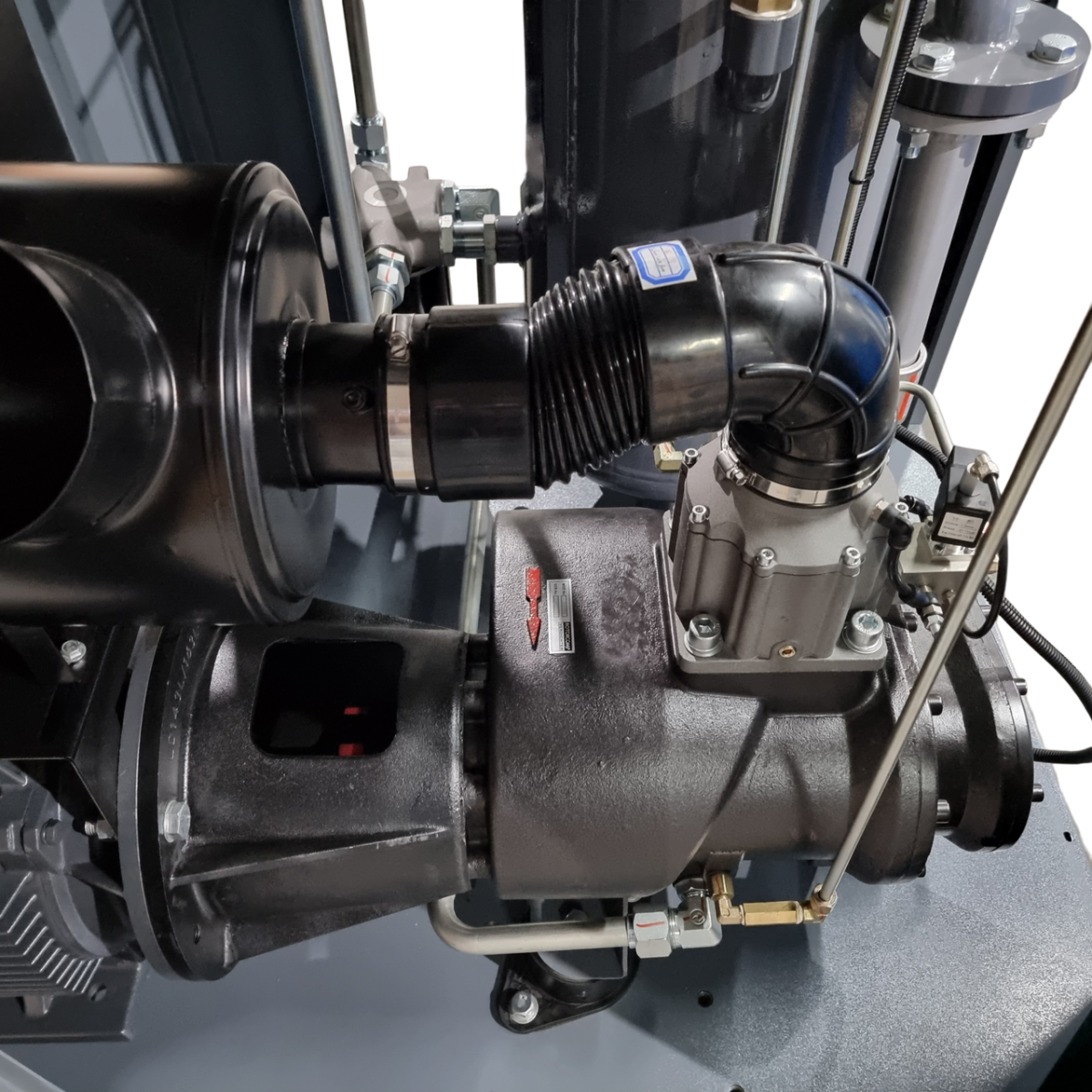 2. Прямий привод: Прямий привод передбачає, що двигун компресора безпосередньо пов'язаний із обертовим елементом (наприклад, гвинтовим компресором) без використання помічників, як-от ремені або шестерні. Це підвищує ефективність, зменшує втрати енергії та вимагає менше обслуговування.