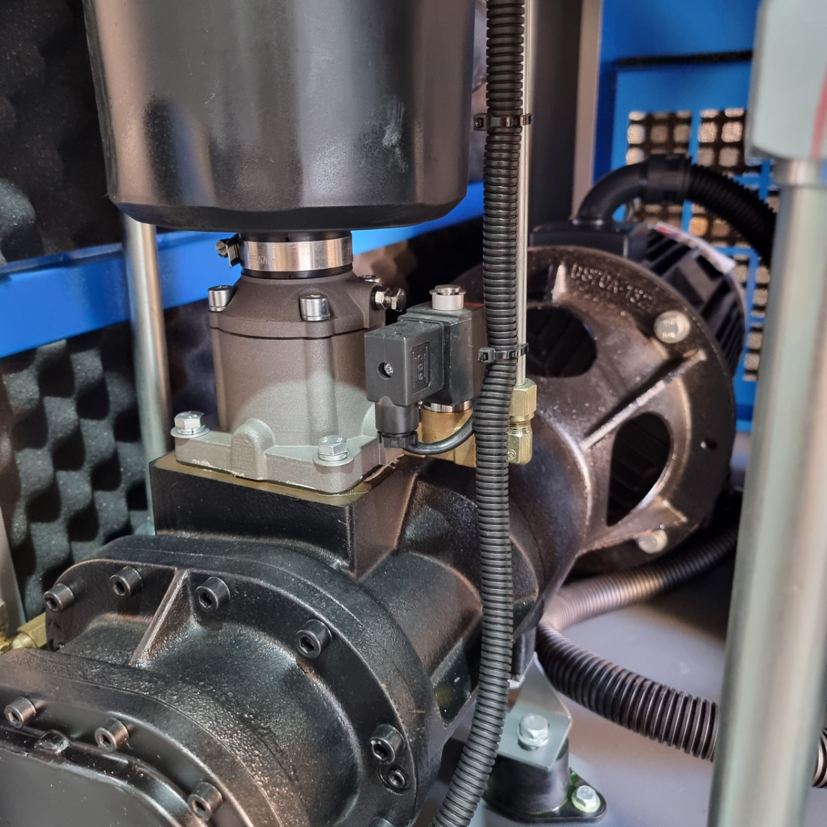 Двигун IE3: IE3 (Efficiency Class 3) — це клас ефективності для електродвигунів, що встановлюються на різне обладнання, включно з компресорами. Це означає, що двигун має високий ступінь ефективності та здатний знизити споживання електроенергії, порівнюючи з менш ефективними двигунами.