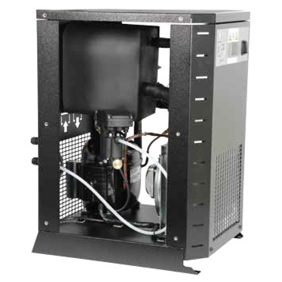 конденсация воды за счет охлаждения воздуха хладогентом. Весь конденсат отделяется от основного потока сжатого воздуха на третьем этапе с помощью встроенного демистера (каплеуловителя). Проверенная и прочная конструкция обеспечивает эффективную и надежную работу, быструю установку и простое обслуживание.