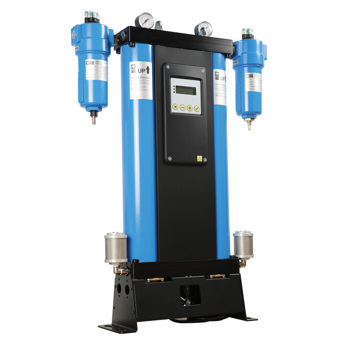 Адсорбційні осушувачі це пристрої розроблені для видалення вологи з стисненого повітря. На відміну від рефрижераторних осушувачів, після яких температура точки роси повітря знижується до +3С, адсорбційні осушувачі дозволяють отримати “глибоко“ осушене повітря, з температурою точки роси -70С. Як зрозуміло з назви, робота даних осушувачів основа на властивості поглинання твердим речовиною - адсорбентом, рідини з стисненого повітря.