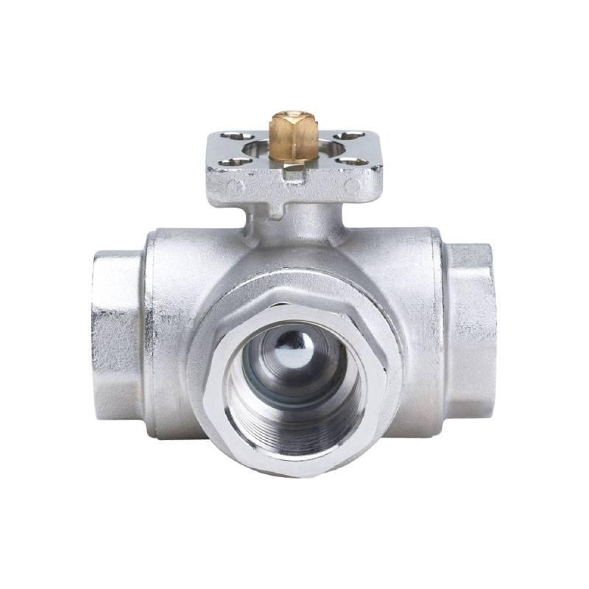Кульовий кран триходовий, повнопрохідний з «L» подібною кулею